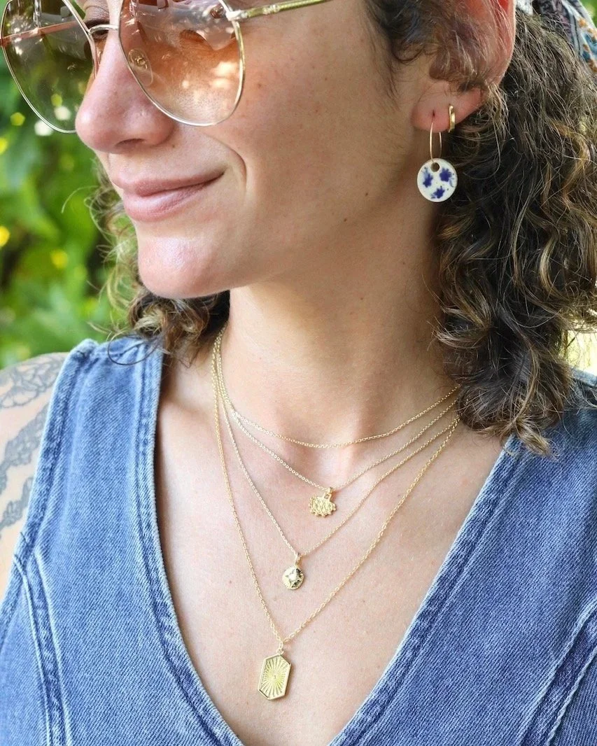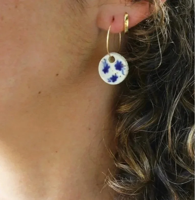 Bloom with every move wearing these charming ceramic earrings, featuring delicate blue flowers hand-painted onto white ceramic spheres. Nestled on 14k gold-filled hoops, these are perfect for those who love to mix artistry with everyday style.